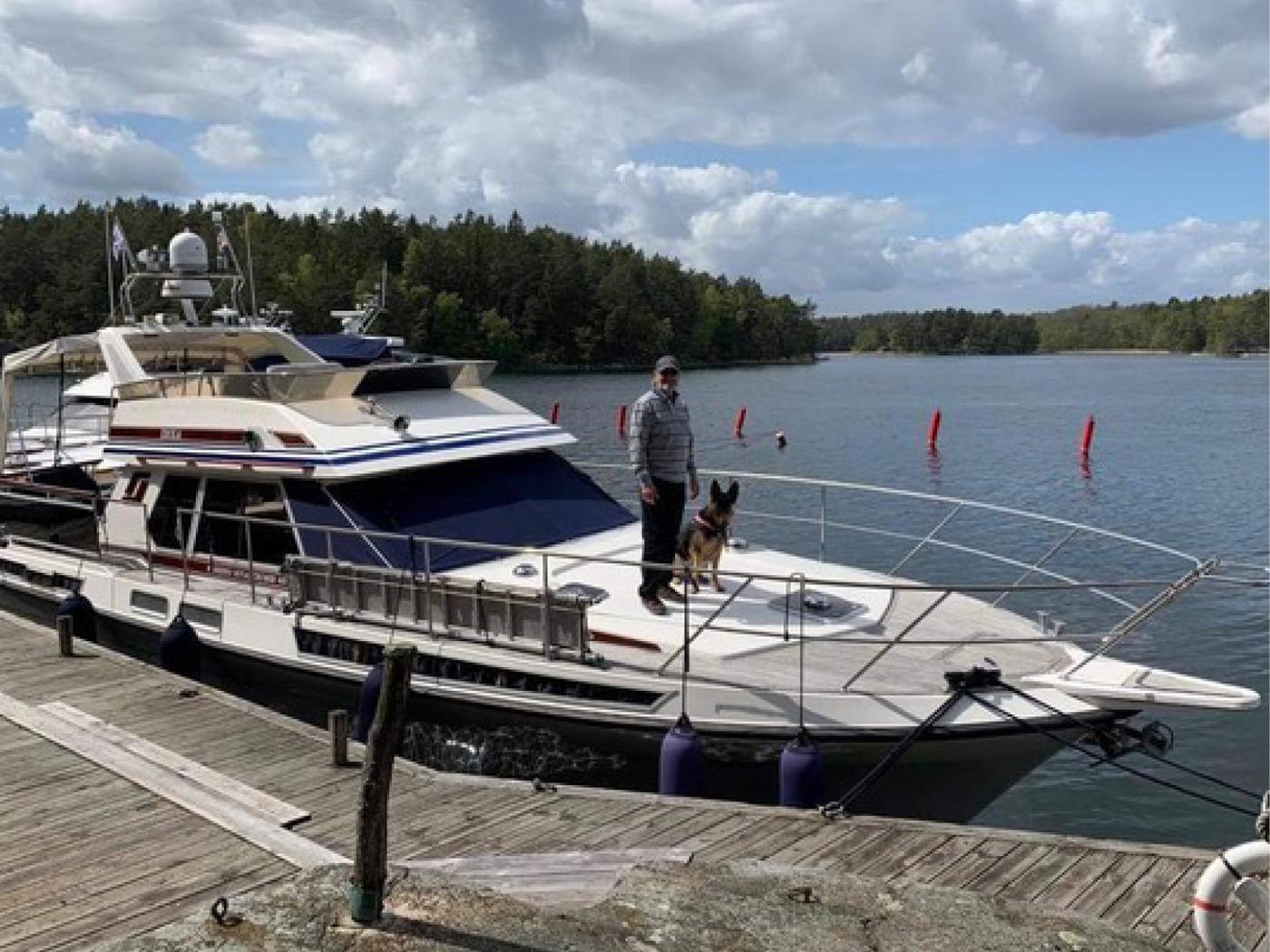 När pandemin slog till insåg jag snart att det bästa stället att vara på var i skärgården. Där kan man umgås utomhus, på säkert avstånd, samtidigt som man har sin egen Coronafria båt. Det var inte mycket att fundera på. I början av maj bunkrade jag mat och dryck, tog med mig min hund och katt (en Schäfer och Main Coon) och satte kurs mot Storebros klubbholme, Jolpen. Det är en fantastik ö som ligger strax norr om Grinda. Här låg jag i drygt 3 månader och jobbade på distans. Det fungerade utmärkt och var underbart att få äta frukost på akterdäck innan arbetsdagen började. Det visade sig att det var fler än jag som valde Jolpen som arbetsplats. En sommar jag aldrig kommer att glömma!