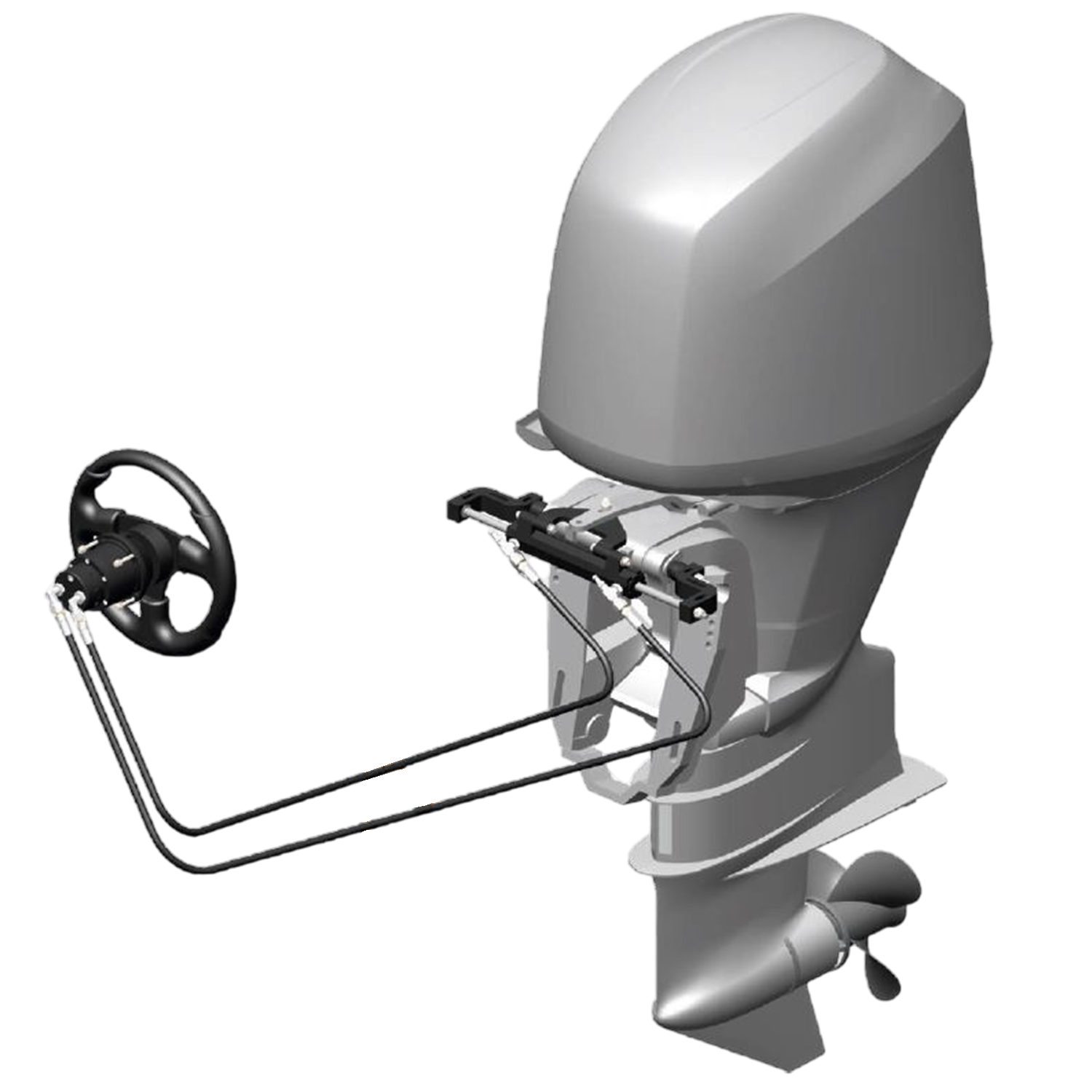 Multisteer 350 är valet för större utombordare med en effekt på upp till 350 hk. Systemet har en hydraulisk cylinder med en non-feedback ventil som förhindrar oavsiktlig vridning av motorn under drift. Det använder två flexibla och tåliga högtrycksslangar med snabbkopplingsfästen, vilket möjliggör enkel, säker och snabb installation. Det robusta aluminiumhöljet ger långvarig hållbarhet och skyddar mot korrosion från havsvatten.