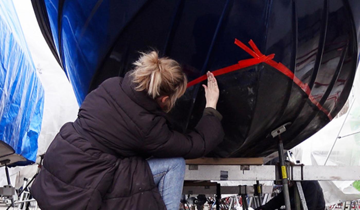 Därefter ser processen likadan ut som för segelbåten, tejpa vattenlinjen och maskera ytor som inte ska ha någon bottenfärg.