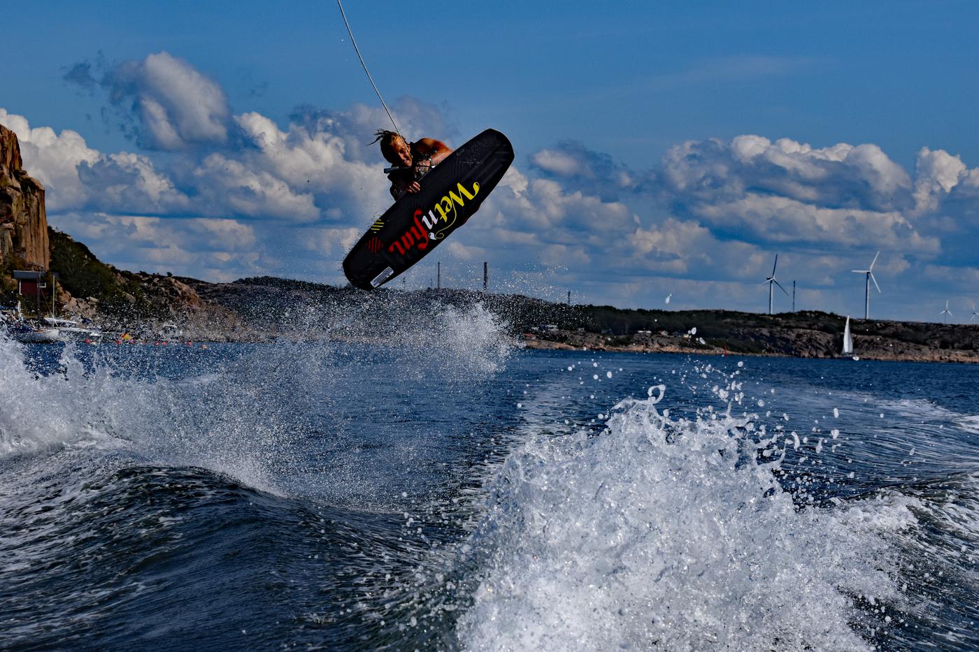 Som wakeboardåkare kan man se till att man hamnar där avståndet mellan vågorna är bra för att hoppa över dom och även högre.
