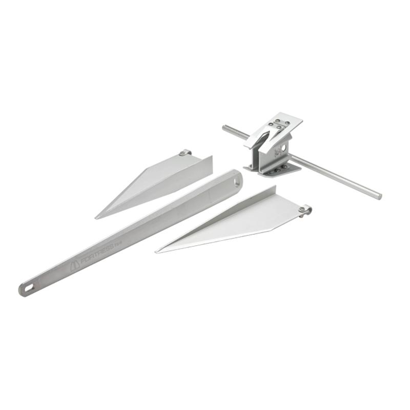 Fortress är demonterbart och tillverkat i anodiserad aluminium, ställbara flyn för olika bottnar och är det lättaste ankaret på marknaden i förhållande till greppstyrka. Välbeprövat ankare med över 30-års tillverkning. Aluminiumlegeringen gör ankaret lätthanterligt med hållfasthet som ett ankare i stål.