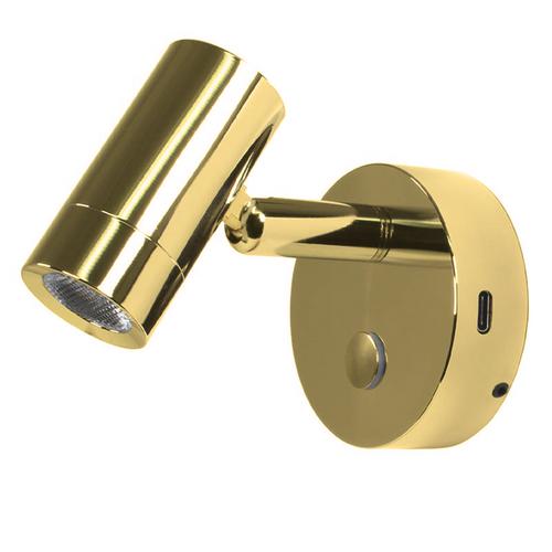 Skott/läslampa 2W (LED) från Nautilight. Lampan är i mässing och ger ett behagligt varmt ljus för en mysigare stämning ombord. Inbyggd USB-C kontakt vid lampfoten.