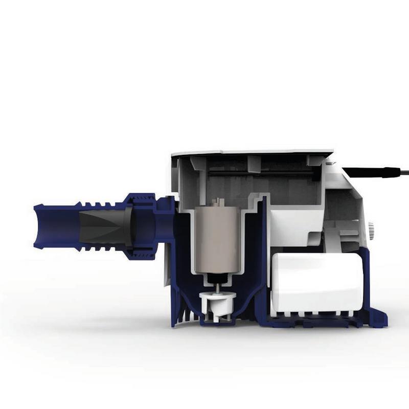 Den patenterade X-Air™ impellern tvingar ut luftbubblor som fastnar i slangen och undersidan av pumpen ur rörsystemet så pumpen inte går torr.
