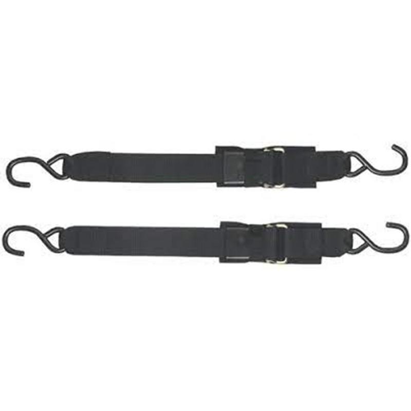 Spännband med fasta S-krokar i ändarna för fastsättning i akterspegelsöglor och släp.
