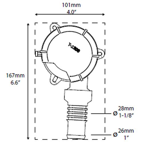 Slanganslutning: 25mm (1") & 28mm (1-1/8")