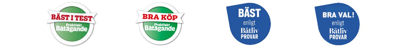 Vi är stolta att dessa produkter har valts till "Bäst i test" & "Bra köp" i tidningen Praktiskt Båtägande och "Bäst" & "Bra val" i tidningen Båtliv.