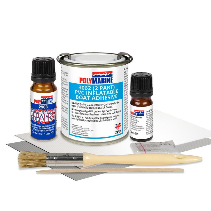 Polymarine 2-komp lim PVC är ett komplett reparationskit för PVC-baserade uppblåsbara båtar, som RIB, SIB, jollar och SUP-brädor. Kitet innehåller professionellt kvalitetslim i två komponenter, förstärkt PVC-väv i två färger samt nödvändiga tillbehör för att göra en hållbar och snygg lagning. Med primer, härdare, pensel, rörpinne och tydliga instruktioner är du redo att snabbt laga din båt med ett resultat som håller. En kompakt och smidig sats som är perfekt att ha med sig ombord.