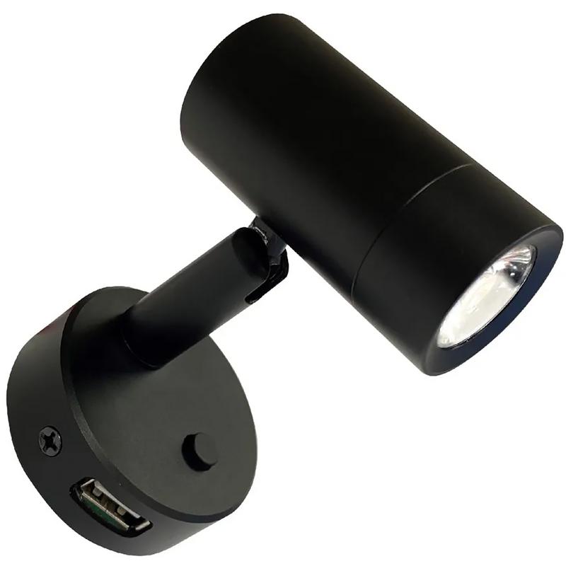 Läslampa i satinsvart som ger en modern och stilren montering. Passar för montering på vägg vid tex. kojplats eller soffa. Lampan är utrustad med USB-uttag med 2A uteffekt vilket möjliggör laddning av mobila enheter. Adapter för USB-C medföljer.
