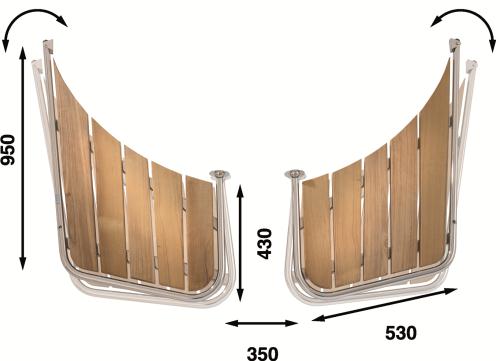 Badplattform för snipa, 2-delad. Med unika specialutformade fästbeslag passar till alla möjliga och omöjliga akterspeglar. Tillverkad i maskinpolerat rostfritt syrafast stål AiSi 316 och solid teak.