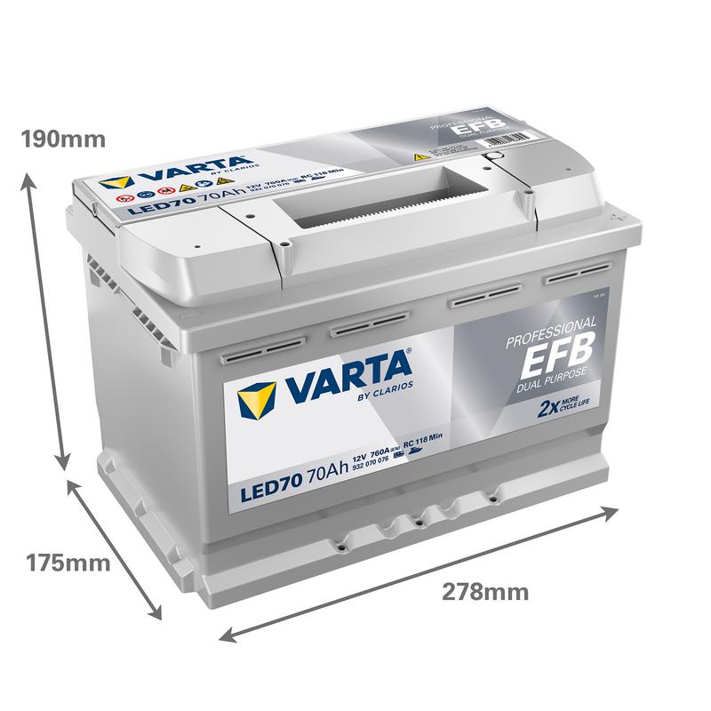 Den robusta konstruktionen och den förbättrade djupurladdningsförmågan gör Varta Professional Dual Purpose EFB perfekt för moderna båtar. Det är idealiskt för att tillgodose både startbehov och kontinuerlig drift av elektroniska system ombord.