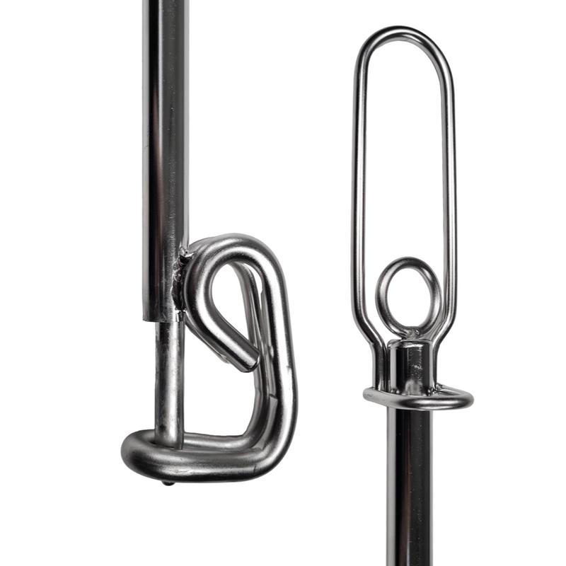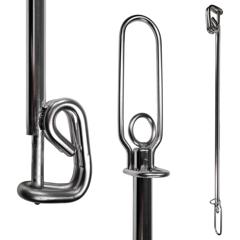Underlättar tilläggning vid boj. Spärren för kroken manövreras från handtaget. Rostfri syrafast.