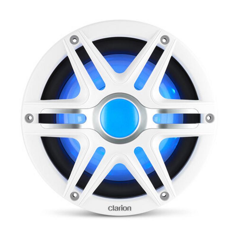 Salt- och solbeständigt sportgaller i vitt för Clarion 10” subwoofer med RGB -belysning.