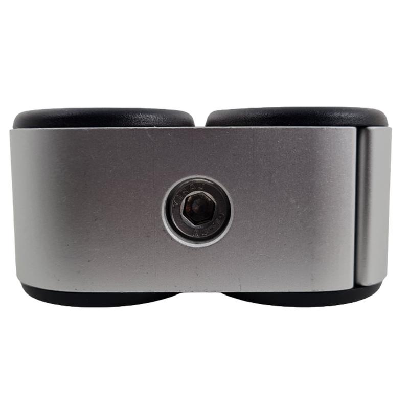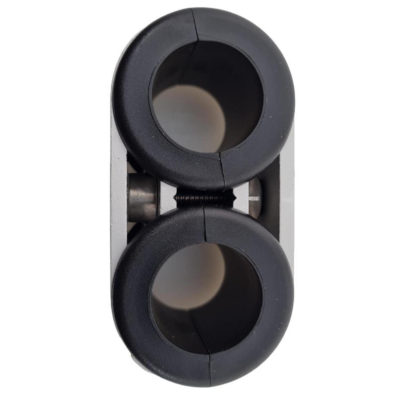 För dubbelkoppling av rör. Aluminium anodiserad. Plastbussning.