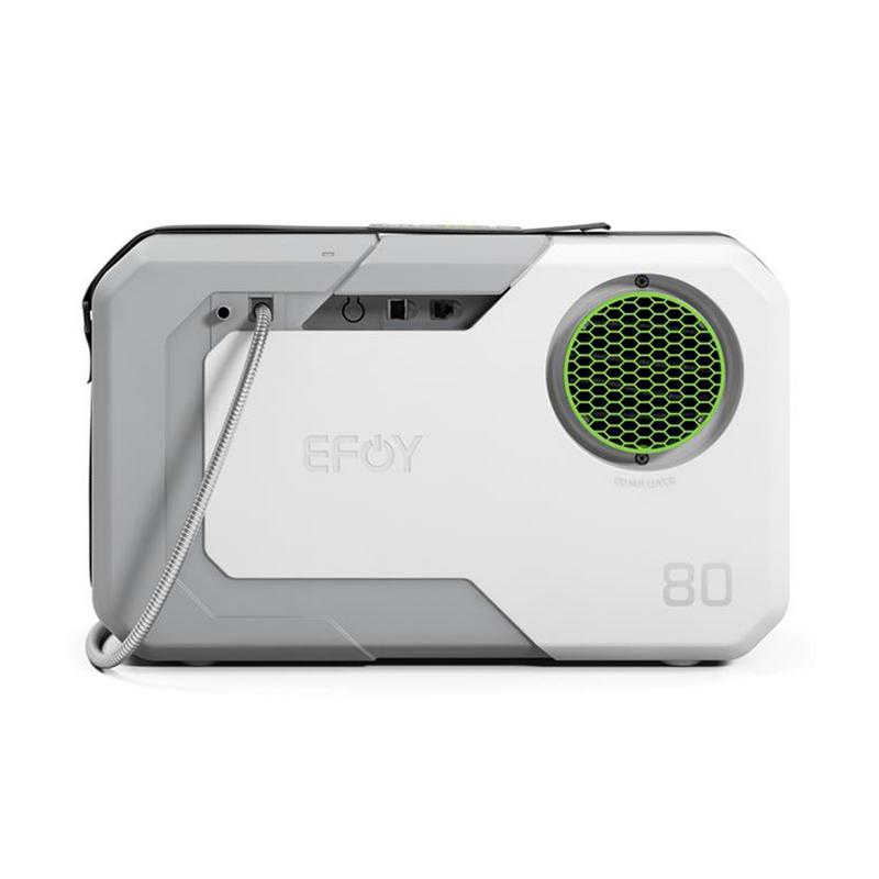 EFOY-bränsleceller är baserade på DMFC-teknik (Direct Methanol Fuel Cell). De omvandlar kemisk energi till elektrisk energi utan mellanliggande steg och liten effektivitetsförlust. Metanolen i bränslepatronen kompletteras med syre från luften och används för att producera el. Förutom laddningsström, skapas spillvärme och vattenånga med lite koldioxid, vilket gör den effektiv och miljövänlig.