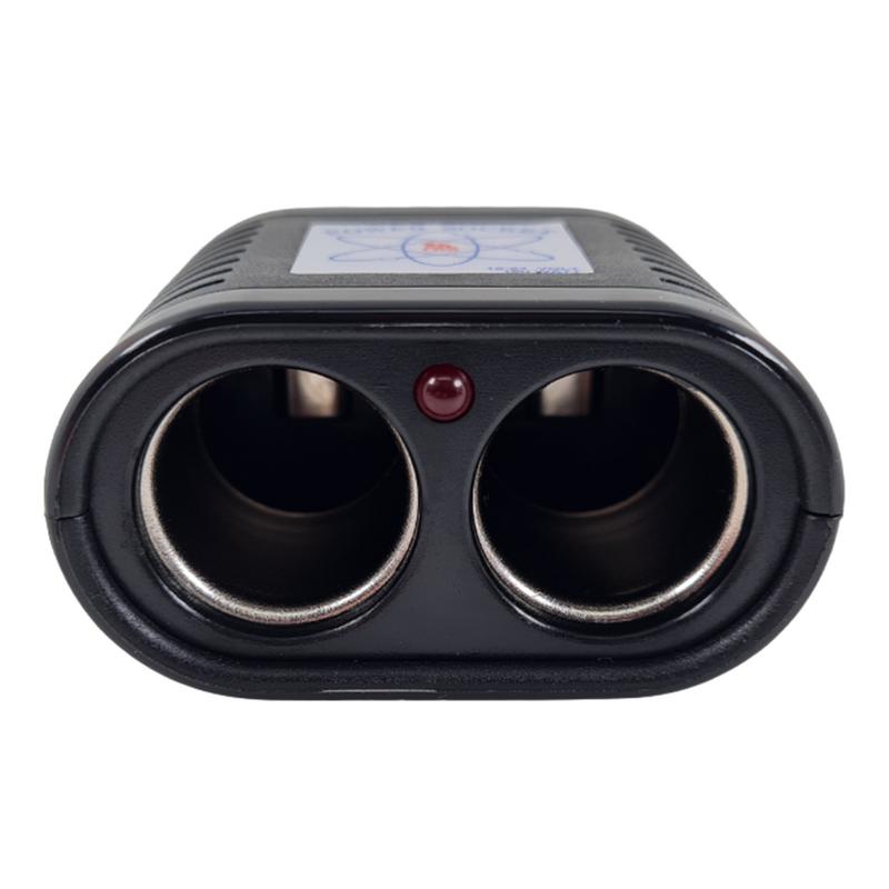 En stickpropp med två uttag. För stickkontakt av "cigarettändar" typ.