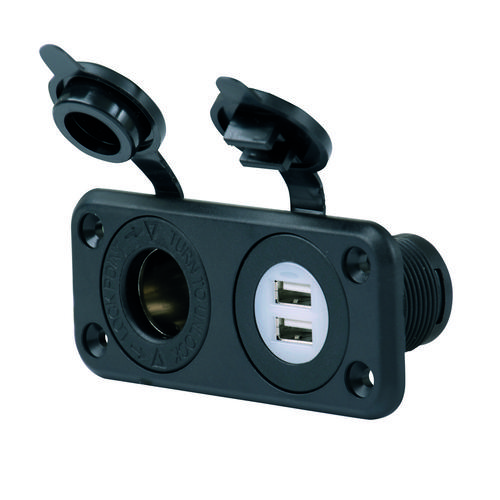 Kombinerat USB - och eluttag, model cig.plug, passar med andra Marincokontakter vilket innebär fuktsäker anslutning.