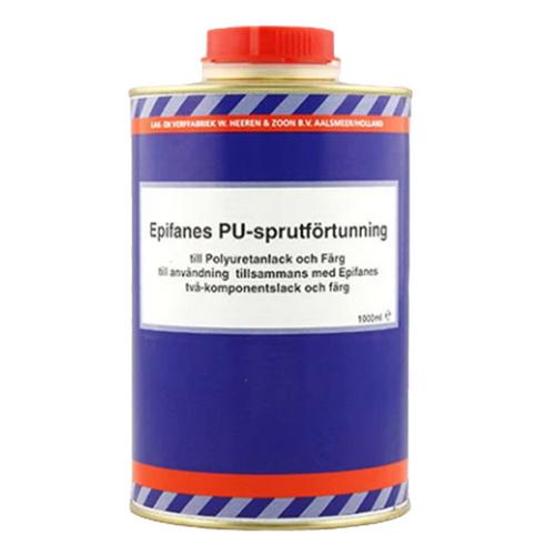 Används för att uppnå optimal yta vid sprutlackering. Denna förtunning skall användas till sprutmålning av Epifanes tvåkomponentfärg och lack. Vid användning av Epifanes sprutförtunning för tvåkomponentfärg och lack följ anvisningarna och produktinformation för den enskilda lacken eller färgen som skall användas för bästa resultat.
