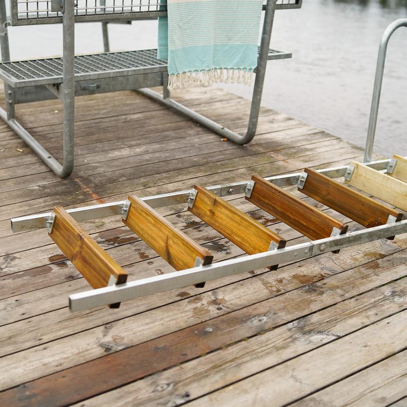 Förlängningsdelen till den fällbara bryggstegen Siljan förlänger stegen med 3 steg och ger en extra längd på 750 mm. Perfekt för att öka räckvidden och säkerheten på din brygga, samtidigt som den erbjuder extra komfort och enkel åtkomst till vattnet.