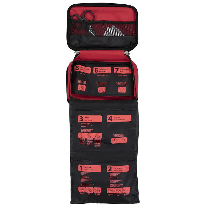 Kit med allt du behöver för första hjälpen. Väskan innehåller hjälpmedel för allt från småsår till mindre brännskador med hela 62 delar. Väskan är praktiskt utformad och har dessutom extra fack för egna föremål.