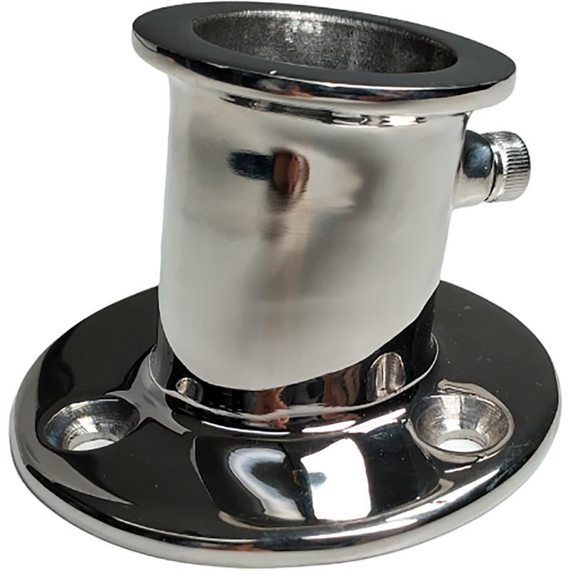Flaggstångshållare för flaggstänger på 32mm. Toppmonterad för utanpåliggande montage med tre försänkta skruvhål. Hållaren kommer med låsskruv för att säkra att flaggstången ej lossnar.