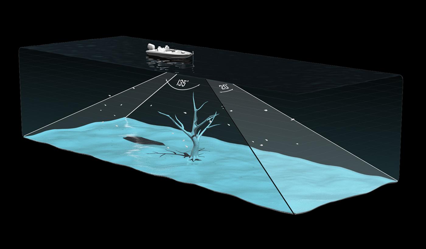 Med hjälp av Panoptix-genomskrovsgivaren med flera strålaroch förstklassigt FrontVü-ekolod (framåtseende) kan du undvikagrundstötning genom att visa botten framför båten i realtid på din plotter. Deninkluderar även LiveVü Forward-ekolodet som ger dig den unika möjligheten attse fisk – till och med dykare –simma omkring i realtid under och 30 framförbåten, även när båten ligger still.