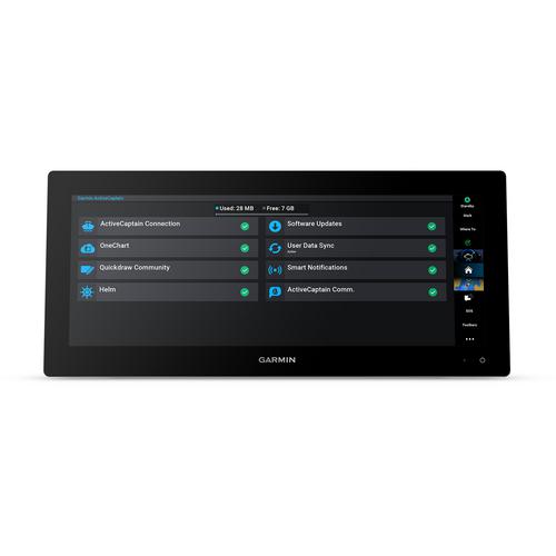 Med inbyggt Wi-Fi, ANT och stöd för Garmin OneHelm, NMEA 2000, NMEA 0183, J1939 och Garmin Marine Network är det enkelt att ansluta och styra utrustning som radar, autopilot, motordata, ljudsystem och trådlösa tillbehör direkt från skärmen