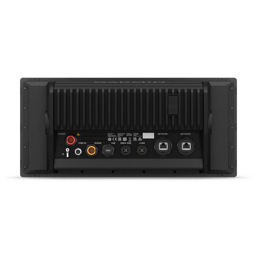 Anslutningar: 2× Garmin Marine Network, 1× J1939, 1× NMEA 2000, 1× BNC video in, 1× USB, 1× 12-pin sonar
