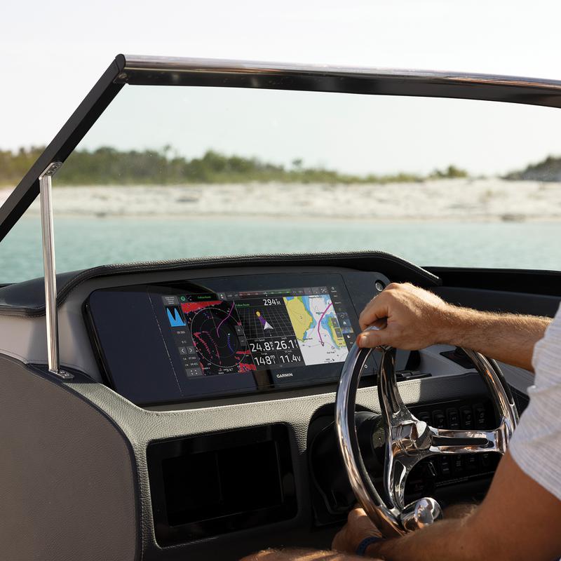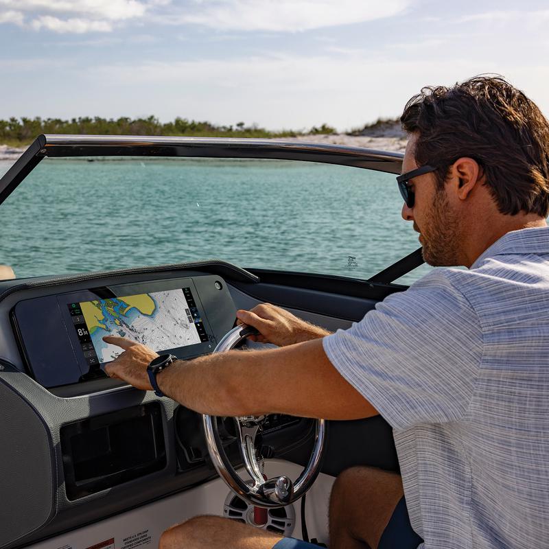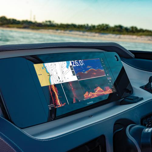 Skärmen är lättläst i starkt solljus och fungerar även med polariserade solglasögon. Tack vare den extra bredden får du gott om plats för att visa sjökort, ekolod och annan viktig information samtidigt. Antingen sida vid sida eller i anpassade split screen-layouter.