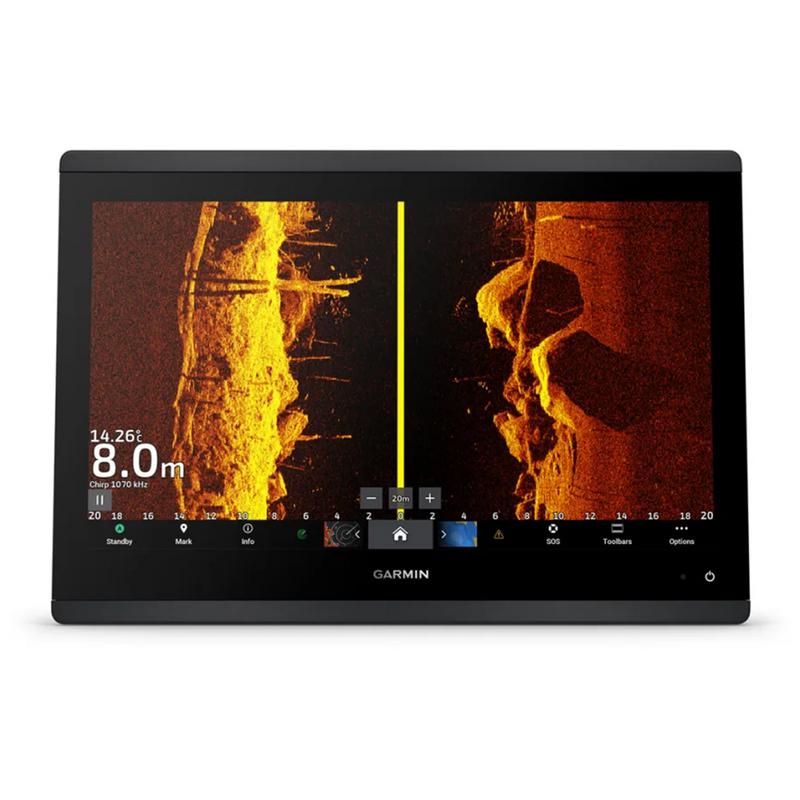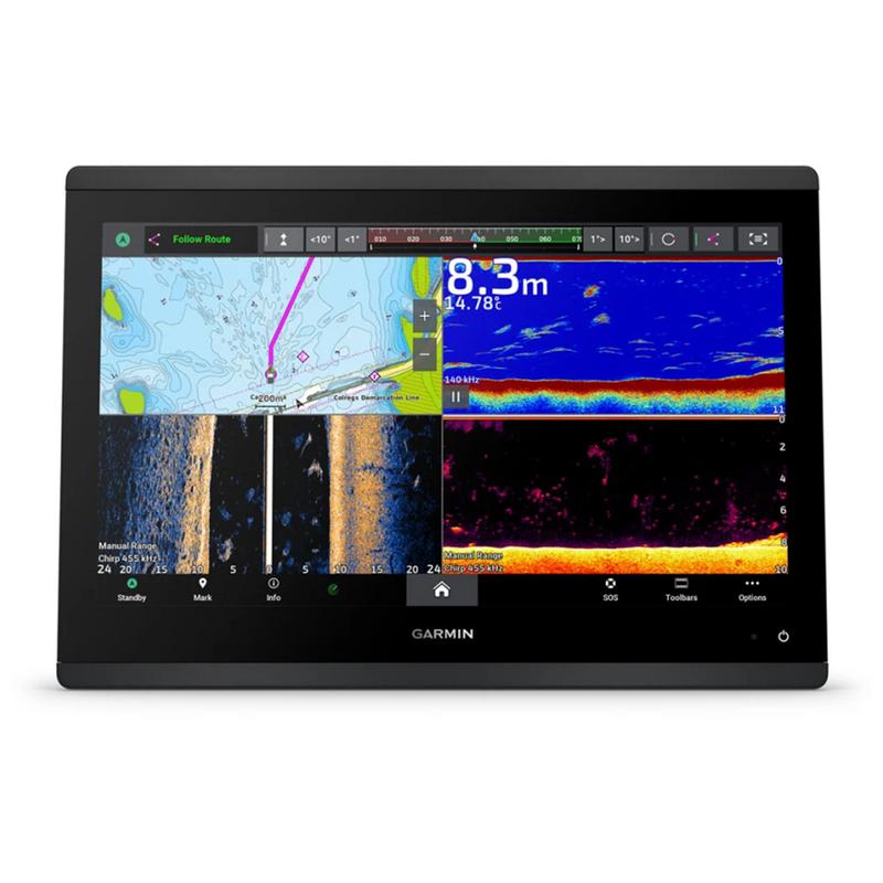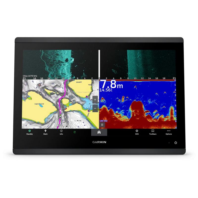 Det inbyggda Ultra HD SideVü- och ClearVü ekolodet ger livfulla, färgade paletter med höga kontrast för att skilja fisk från strukturer. GPSMAP® 1623xsv stöder också 1 kW CHIRP traditionellt ekolod.