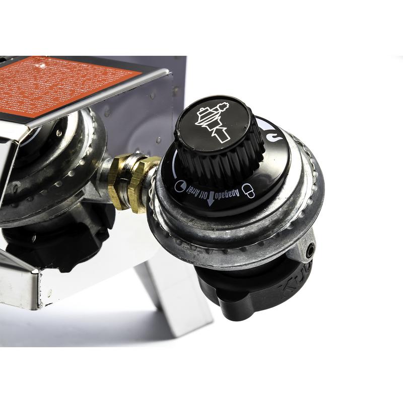 Fin rostfri gasolgrill från Kuuma. Enkel att placera stabilt med sina fyra infällbara ben alternativt köp till ett smart pulpitfäste (art 88222 eller art 88223) för att montera den på pulpit/räcke. Grillen drivs av en Campinggaz propantub som fästs direkt på gasolgrillen. Vill du ansluta gasolgrillen till en extern gasolflaska köper du till gasolanslutning (art 88221) och lämplig gasolregulator till din gasolflaska.