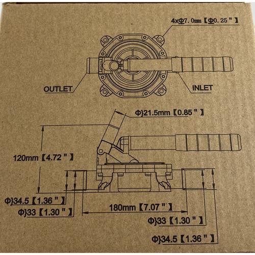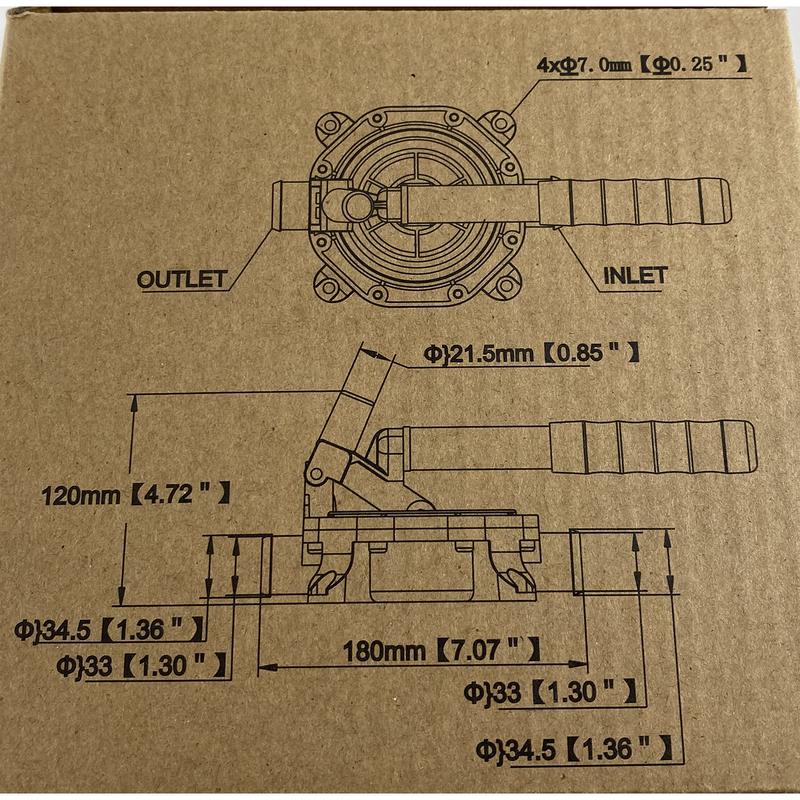 Handlänspump, manuell länspump för fastmontering med max kapacitet 45 liter/min (720 GPH = 2725 LPH).