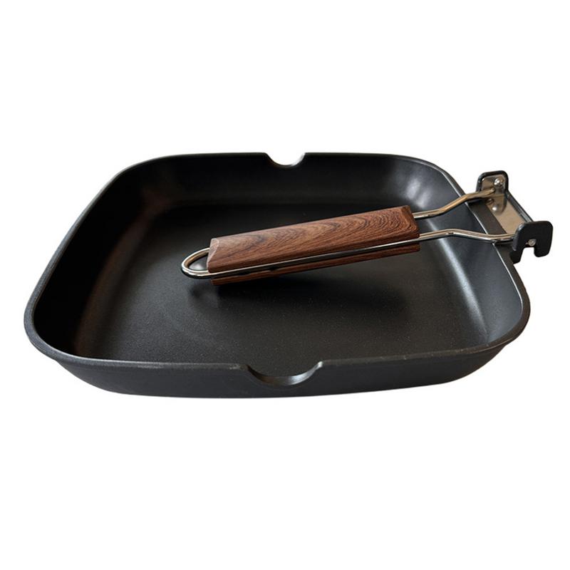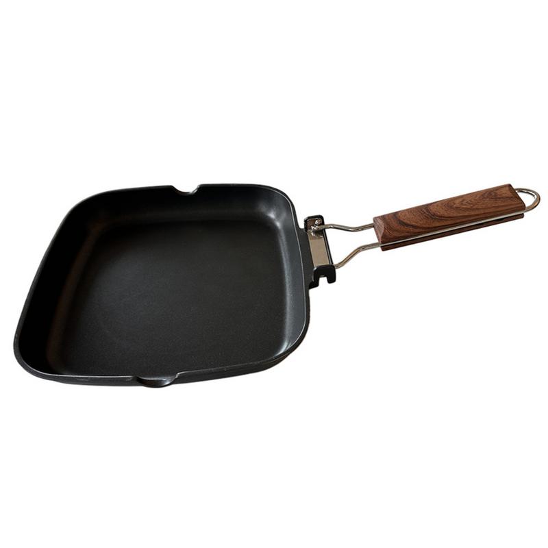 Praktiskt hopfällbart stekjärn med fyrkantig form som ger större och jämnare stekyta än traditionella pannor. Den effektiva non-stickbeläggningen gör matlagningen smidig och minimerar behovet av fett, samtidigt som rengöringen blir enkel.