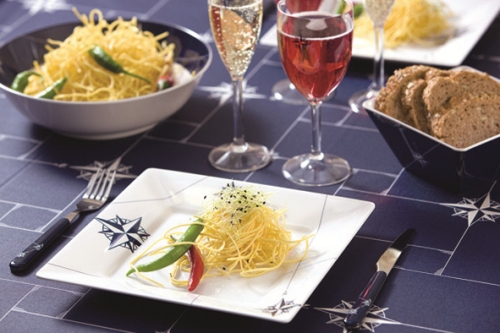 En melaminservis från kvalitets producenten Marine Buisness som kombinerar vackert med praktiskt. Hög reptålighet och vacker dekor i vitt och mörkblått med smakfull marininspiration.