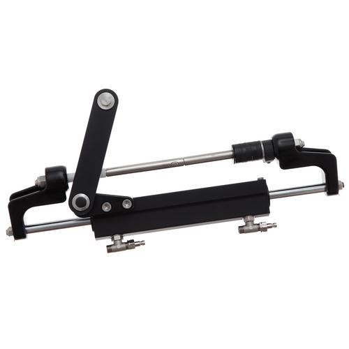 Komplett paket för utombordsmotorer upp till 175hk. Hydraulcylinder av "Bullhorn typ" som innebär att cylindern har lika slaglängd SB och BB vilket medger ett lättare montage i trånga motorbrunnar. Styrningen är väldigt lätt att installera och passar de flesta utombordare enligt listan nedan. Systemet levereras komplett med pump, cylinder, 6 meter twinslang inklusive kopplingar samt 2 liter hydraulolja. Hydraulstyrningen har "non feedback" funktion d.v.s. att motorn inte kan röra sig om man släpper ratten. Ej lämplig att använda på båtar snabbare än 48 knop.