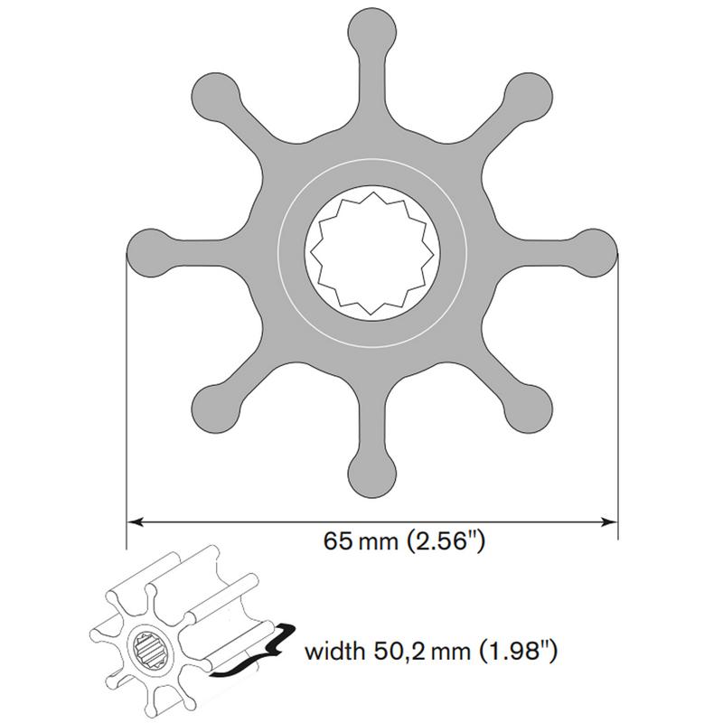 SPX Johnson Pump 09-1028BT-1 impeller är tillverkad i det slitstarka materialet MC97 och säkerställer ett tillförlitligt vattenflöde. Den är särskilt utvecklad för att användas med SPX Johnson Pump F7-pumpar men ersätter också motsvarande impellrar från andra tillverkare som Jabsco, Yanmar och Volvo Penta. Impellern levereras komplett med packningar och smörjmedel för en enkel installation. Genom att regelbundet byta slitna impellrar kan överhettning förebyggas och ett optimalt vattenflöde bibehållas.