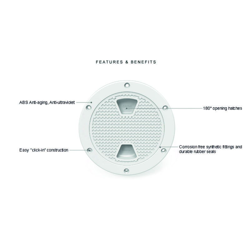 Inspektionslucka i UV-beständig ABS-plast. O-ring i gummi innebär 100% vattentätt lucka.