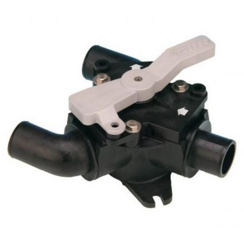 En praktisk och robust ventillösning som gör det möjligt att växla mellan två tömningsvägar, exempelvis från toalett till septiktank eller direkt ut till havet. Ventilen har tre anslutningar på 1 ½″ (≈ 38 mm) samt en extra inloppsanslutning på 1″ (≈ 25 mm) vilket ger stor flexibilitet vid installation.