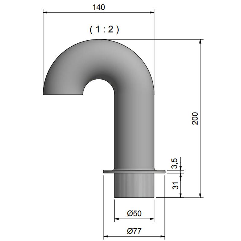 Kabelgenomförning med svanhals för att dra elkablar från mastbasen in i båten.
