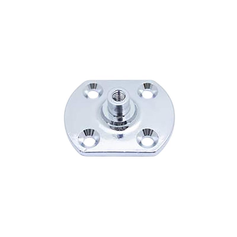 Stilrent och hållbart kapellfäste i förkromad mässing, utformat för montering av kapellbågar. Fästet monteras enkelt med fyra försänkta skruv i hörnorna och är lämpligt för olika lösningar av spray-hoods, kapellsystem och liknande.