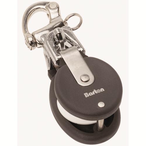 Svirvlande öppningsbart med skothake av brons eller i rostfritt syrafast stål. Sidor av armerad nylon. Hunsvott för koppling till mantåg.