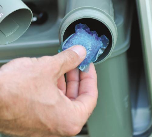Efterlängtad nyhet på toafronten! Saneringsvätska med högsta effekt förpackad i tablettform. Bryter ner fekalier till vätska. Tabletterna stoppar gasbildning och odörer i septiktanken och är klara att använda. 1 tablett per tank.