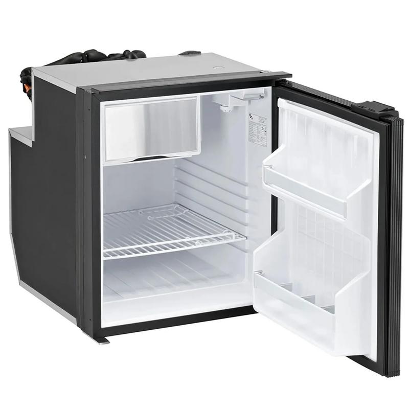 Isotherm CR65 har ett frysfack på 4 liter med lucka. Det rymmer liggande och stående PET-flaskor och mjölkpaket. Inbyggd kompressor som ger slät ryggsida.