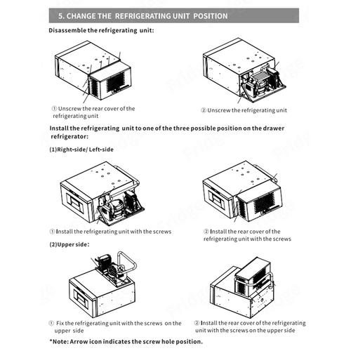 Flexibel installation: Kompressorn är monterad baktill men kan flyttas till höger, vänster eller ovanpå enheten för att passa olika installationsbehov.