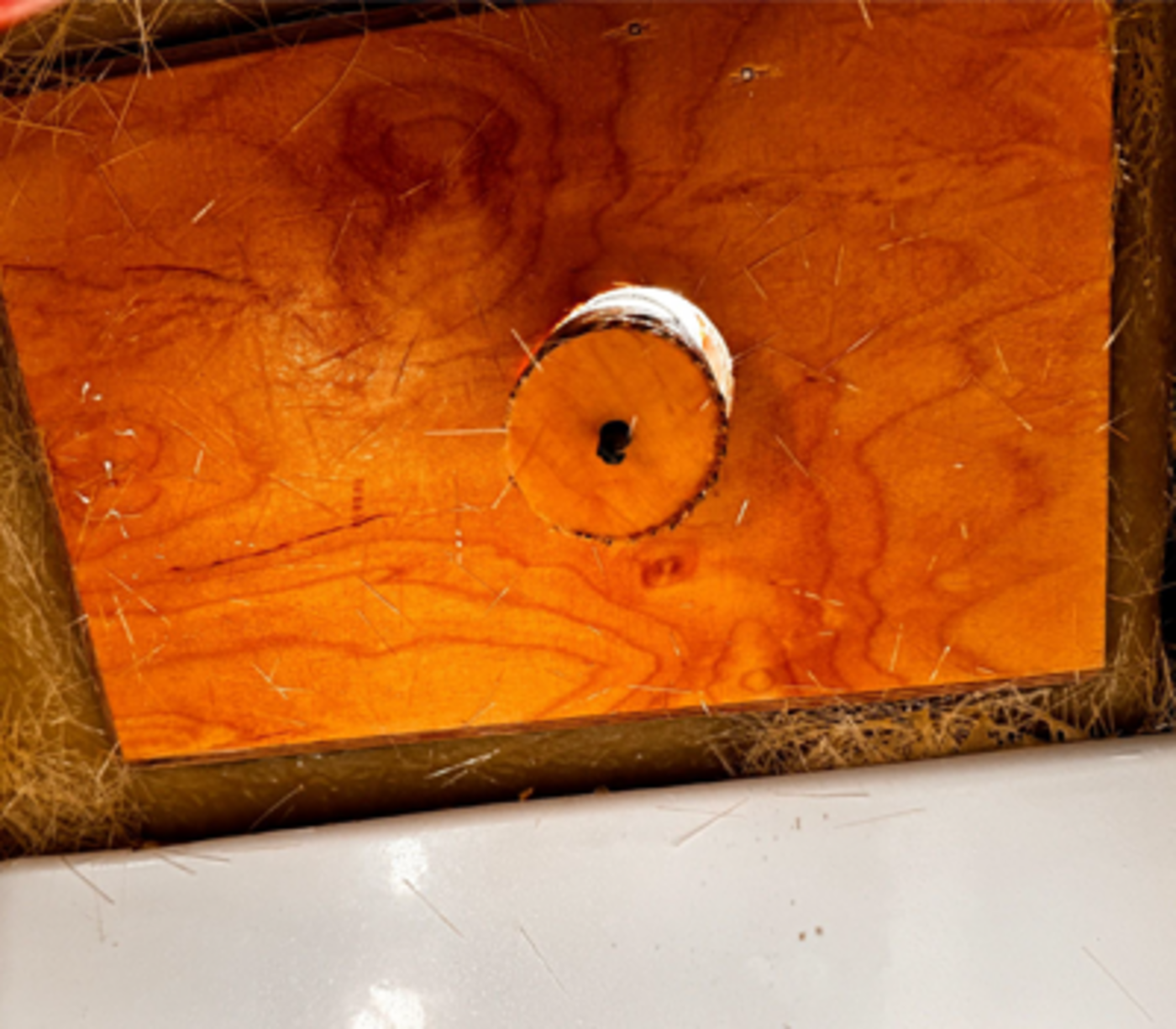 Ett hål behövs borras för att fästa det rostfria elintaget på utsidan av skrovet och det gjordes med en hålsåg på 54 mm. Det finns att köpa i olika storlekar men tips på storlek fanns med i bruksanvisningen till landströms paketet.