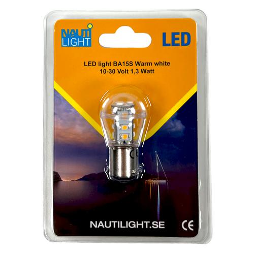 Nautilight BA15S LED generation III, designad för att möta de höga EMC-kraven i den marina miljön. Lampan är mångsidig, med ett spänningsområde på 10-30 volt, vilket gör att lampan kan användas i olika elsystem.