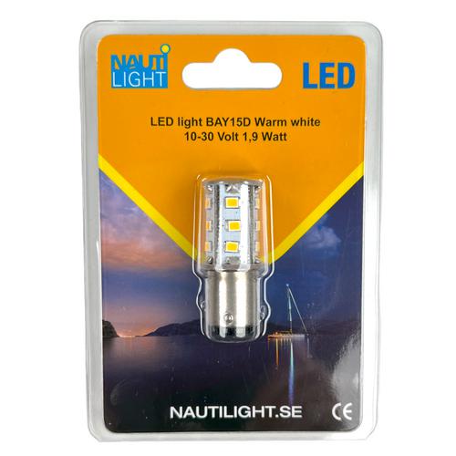 Nautilight BAY15D LED generation III, designad för att möta de höga EMC-kraven i den marina miljön. Lampan är mångsidig, med ett spänningsområde på 10-30 volt, vilket gör att lampan kan användas i olika elsystem.
