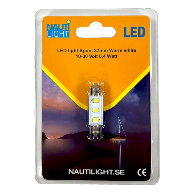 Nautilight Spool 37mm LED generation III, designad för att möta de höga EMC-kraven i den marina miljön. Lampan är mångsidig, med ett spänningsområde på 10-30 volt, vilket gör att lampan kan användas i olika elsystem.