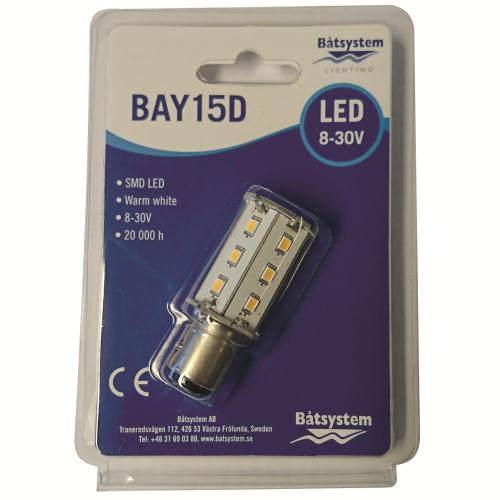 | 71931 | BAY15D | 15 SMD | 8-30 | Varmvitt, 3000K | 1 st. | 210 kr |