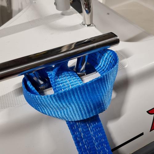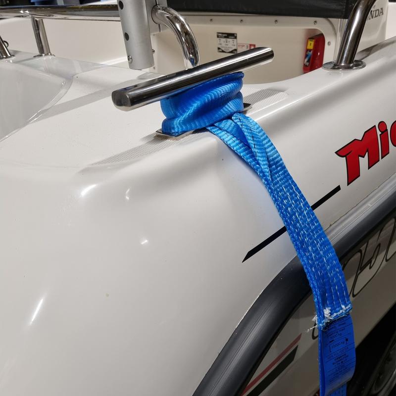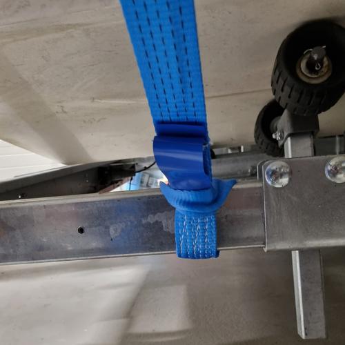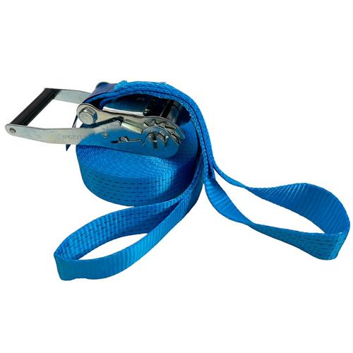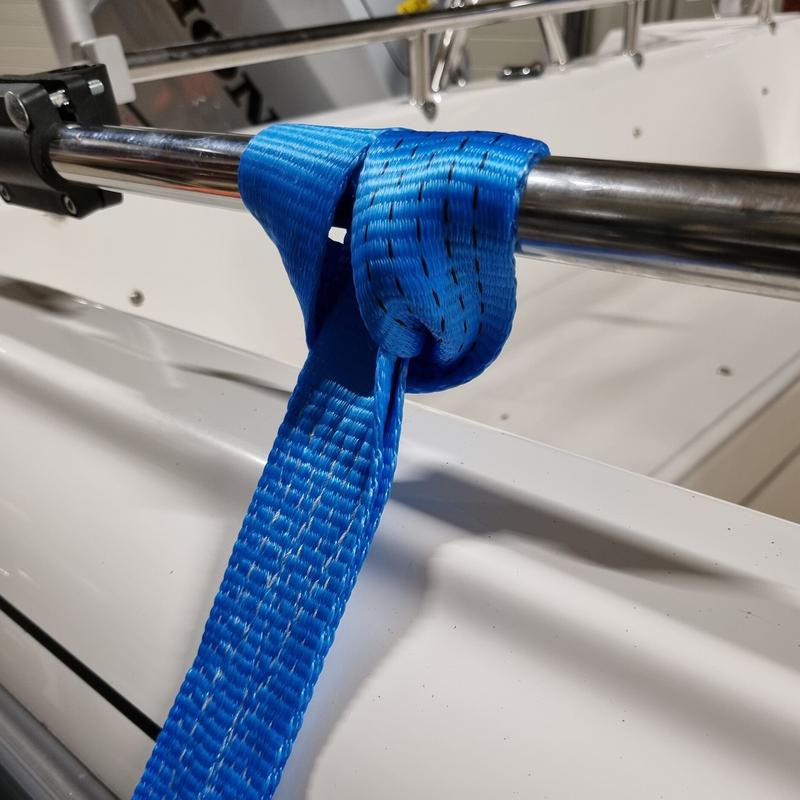 Broberg Spännband med öglor i vardera ände är ett mycket kraftigt och pålitligt verktyg för att säkra last under transport. Tillverkat i Sverige, detta spännband är 50mm brett och 10 meter långt, delat i två sektioner för anpassad användning. Med en maximal belastning på 5 ton vid rakt drag och 10 ton när det är surrat, garanterar detta spännband hög säkerhet för din last. Idealisk för både professionellt och privat bruk.