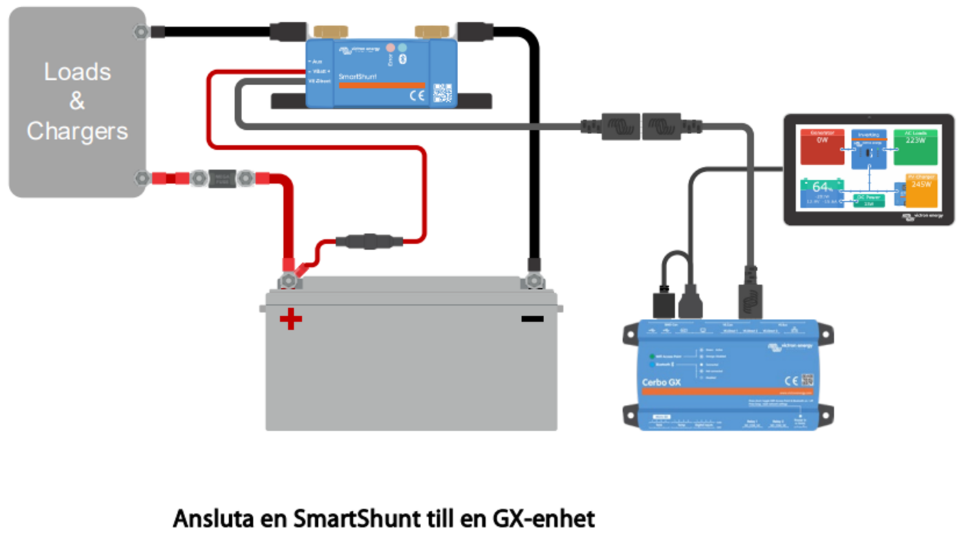 Ett annat ämne vi berör i filmen är övervakning - att ha koll på batteriernas status och laddningsnivå är ofta något man vill ha enkelt till hands. Därför finns lösningar som SmartShunt som antingen via en display eller bluetooth till telefonen kan visa dig den verkliga laddningsnivån. Detta är ett måste för den som vill ha full koll!